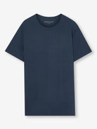 Featuring a soft crew-neck band finish and a streamlined shape that is both comfortable and flattering, we've elevated this navy loungewear t-shirt into a luxury essential. One of our signature fabrics and a customer favourite, our breathable Basel t-shirt is perfect indoors or outside.