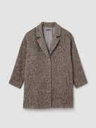 This elegant coat features a statement-making texture crafted from silky soft curly alpaca. Designed with a refined notch collar, welt pockets, and secure snap buttons, it combines luxurious comfort with timeless sophistication for a polished, effortless look.