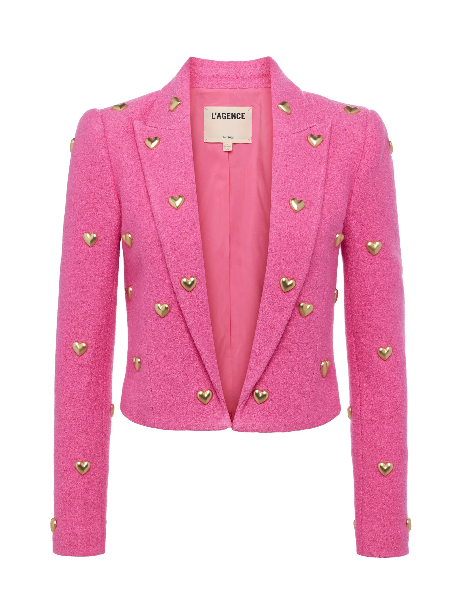 When you meet the Jen blazer, it’s love at first sight. Crafted from a warm wool blend with metal heart accents, this piece combines tailored polish with a feminine playfulness.