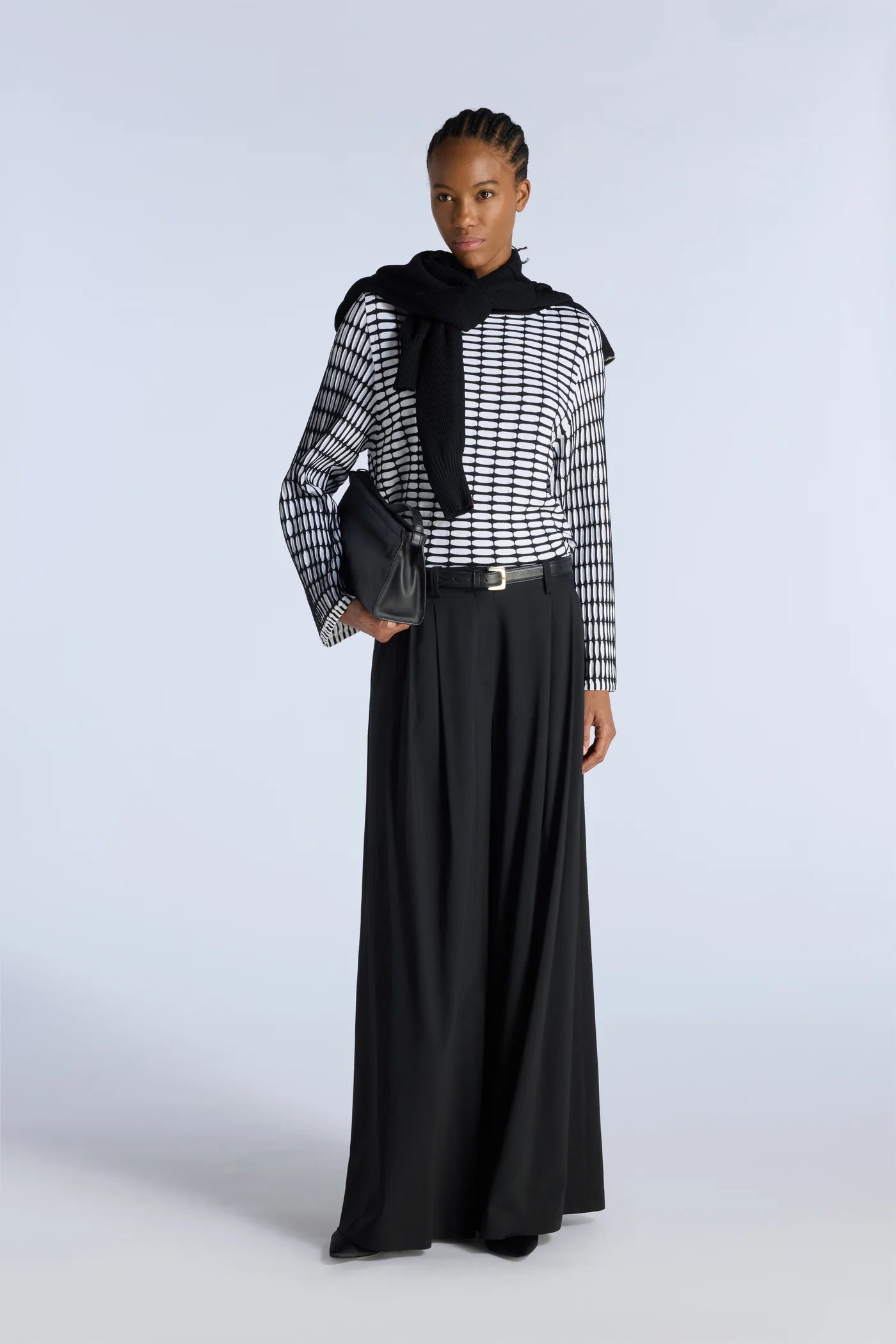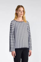 Elevate your wardrobe with this refined Liviana Conti sweater, crafted from luxuriously soft stretch viscose in Italy. The sophisticated two-tone geometric relief pattern creates visual interest, while the boat neckline and long sleeves offer timeless elegance. Finished with coordinating solid trim at the neckline and hem, this piece seamlessly transitions from office to evening. The premium viscose-polyamide blend ensures a fluid drape and comfortable stretch for all-day wear.