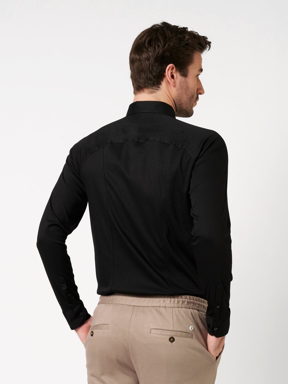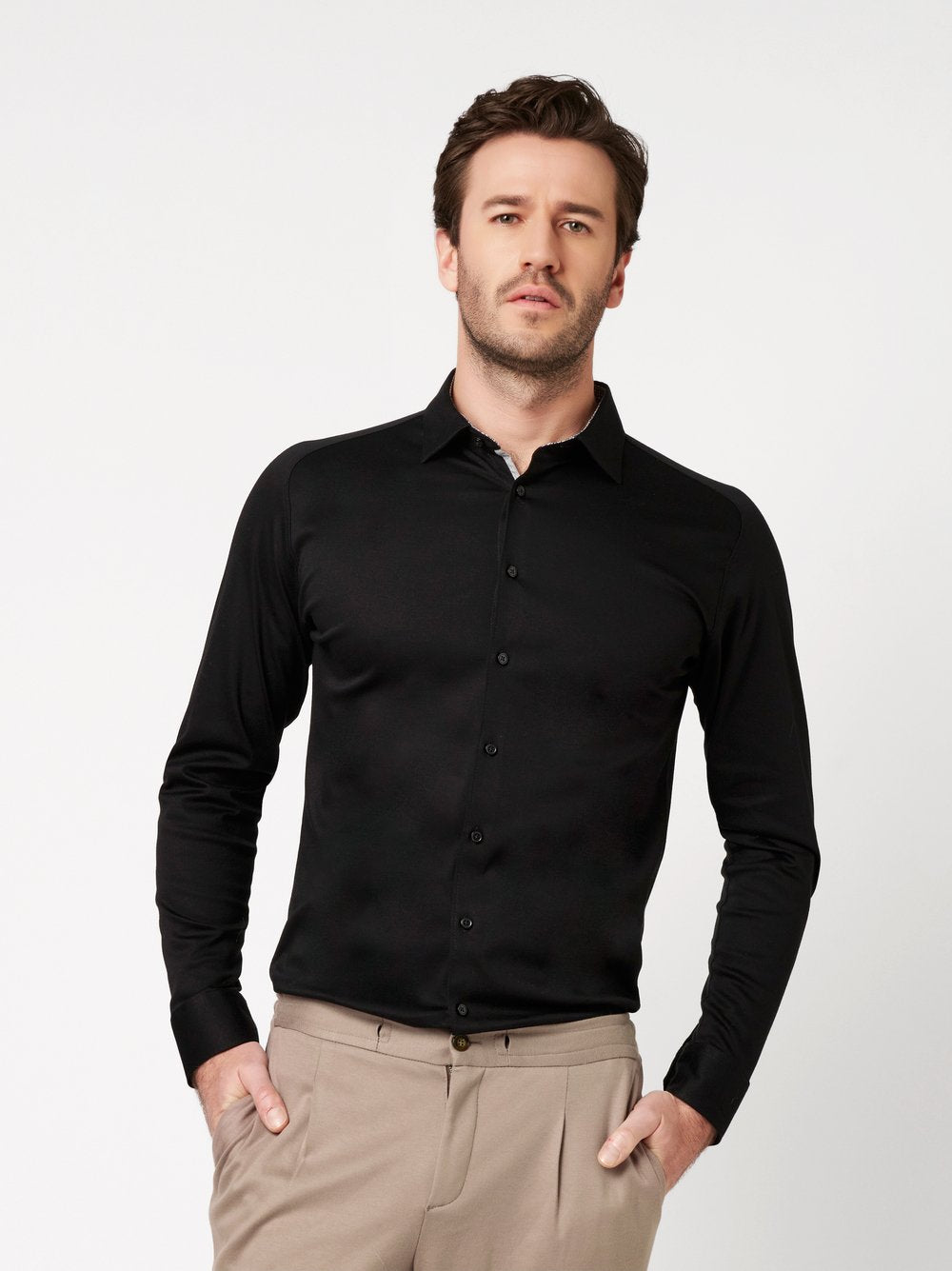 Elevate your everyday wardrobe with this premium jersey shirt, designed for the modern man who values both style and comfort. The distinctive Kent collar and slim fit create a refined silhouette, while the unique cut ensures unlimited freedom of movement throughout your day.