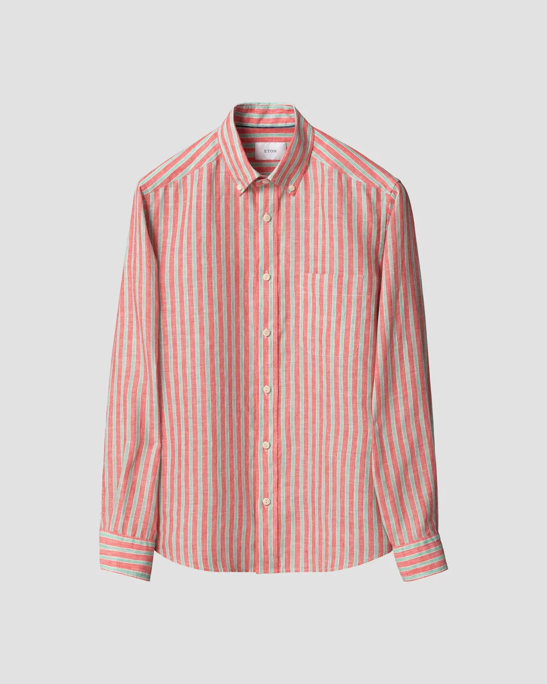 Elevate your warm-weather wardrobe with this distinguished linen shirt from Eton, featuring fabric woven by the renowned Italian mill Albini. The vibrant multi-colored stripes deliver contemporary sophistication, while 100% premium linen naturally regulates temperature and wicks moisture away—keeping you comfortable in heat. Garment-washed for a luxuriously soft hand, the shirt balances refined tailoring with an effortlessly relaxed fit, anchored by classic button closures. A versatile essential for the discerning gentleman.