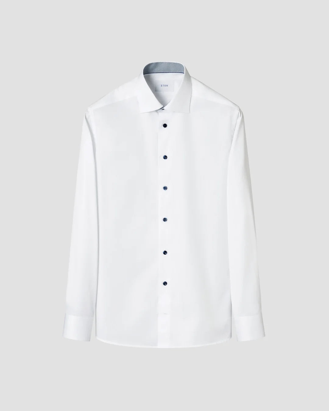 Elevate your everyday wardrobe with this refined Eton Men's Shirt, crafted from our signature organic cotton twill. The fabric delivers a naturally soft feel with excellent wrinkle resistance, making it ideal for both professional and casual settings. Discover understated elegance through the delicate micro print adorning the collar and cuff interiors, while light blue contrast buttons provide a polished finishing touch. A timeless piece that combines comfort with sophisticated style.