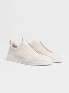 Zegna Men's Off White Deerskin Triple Stitch™ Sneakers