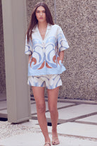 Introducing Misa Women's Elma Shorts, crafted from luxurious satin and adorned with our exclusive Swans motif. These shorts feature double side slit pockets and a covered elastic waist for both style and comfort. Complete the perfect vacation look by pairing them with our Solange top.