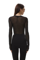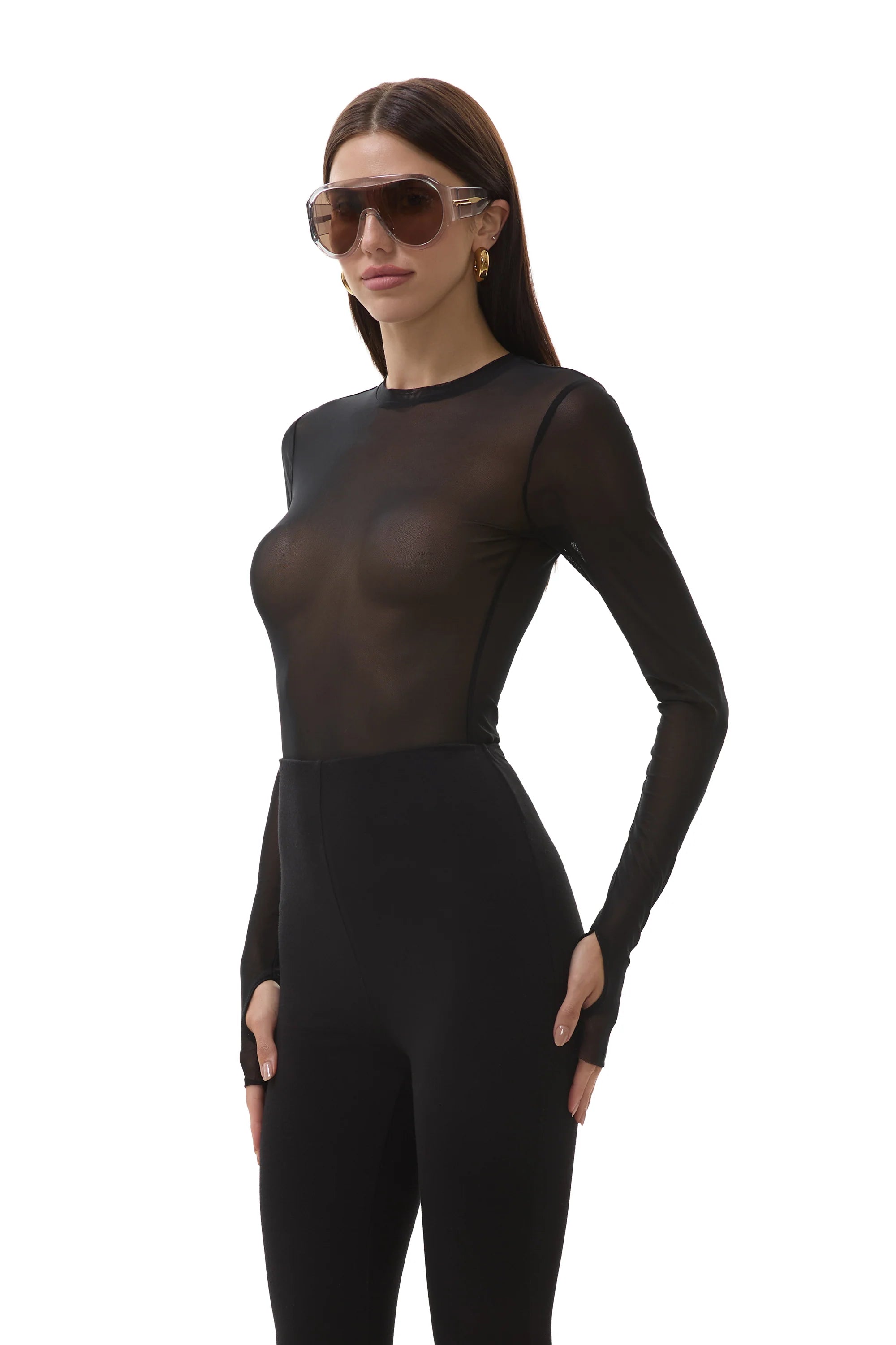 The Kaylee top delivers contemporary style with its sheer mesh fabric and relaxed crew neckline. Signature thumbholes add an edgy, street-inspired detail that works seamlessly into your off-duty rotation. Finished in timeless Noir.