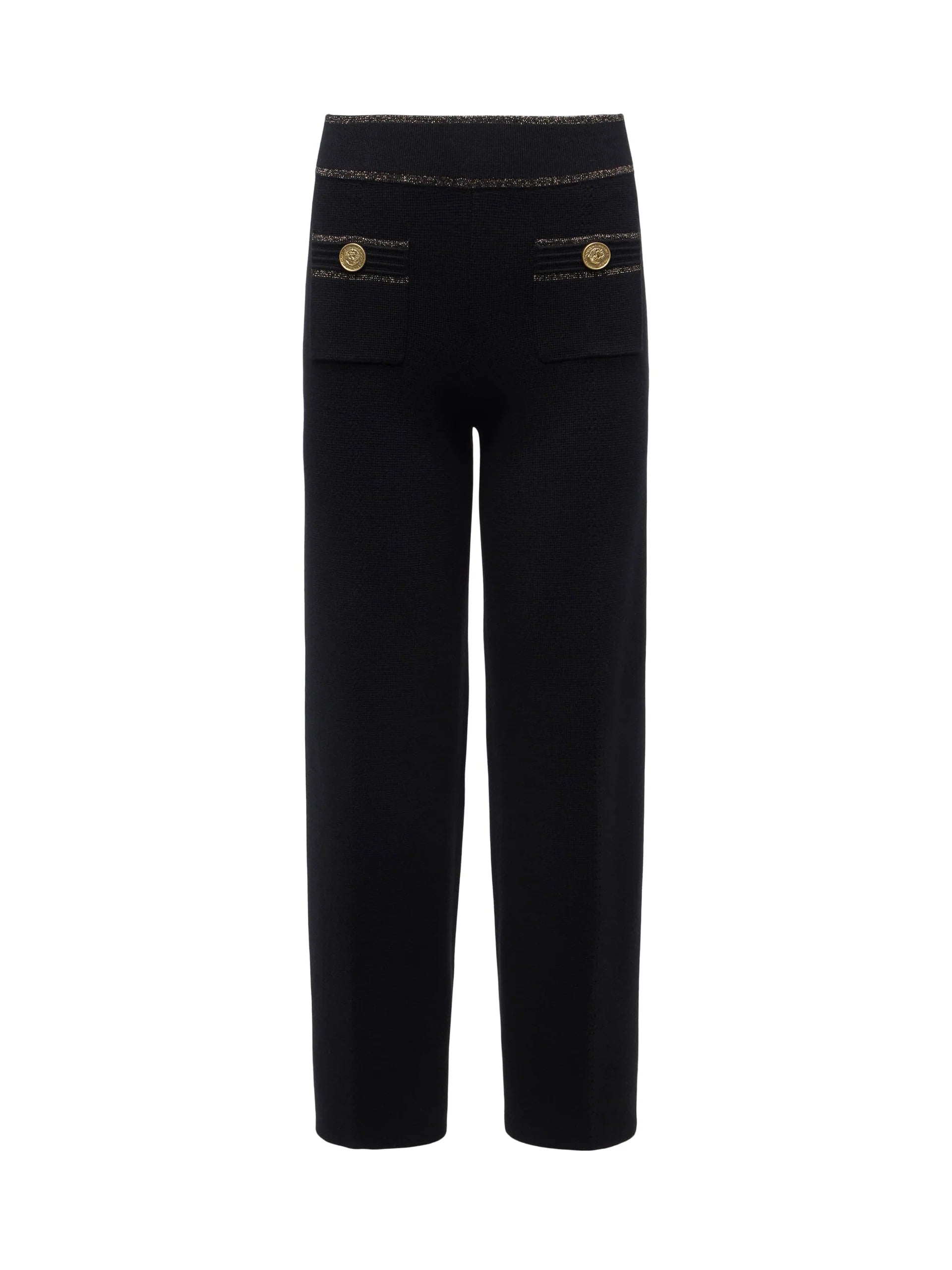 From the airport to the office to evening, the Madrid offers instant polish without compromising on comfort. Embrace the power of the knit pant, now in timeless black with subtle lurex trim.