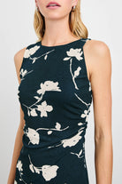 The Daija is a body-contouring dress crafted from compact mesh, designed to flatter year-round. It features elegant draping, a high crew neckline with a single twisted strap, and an asymmetrical hem for a modern finish.