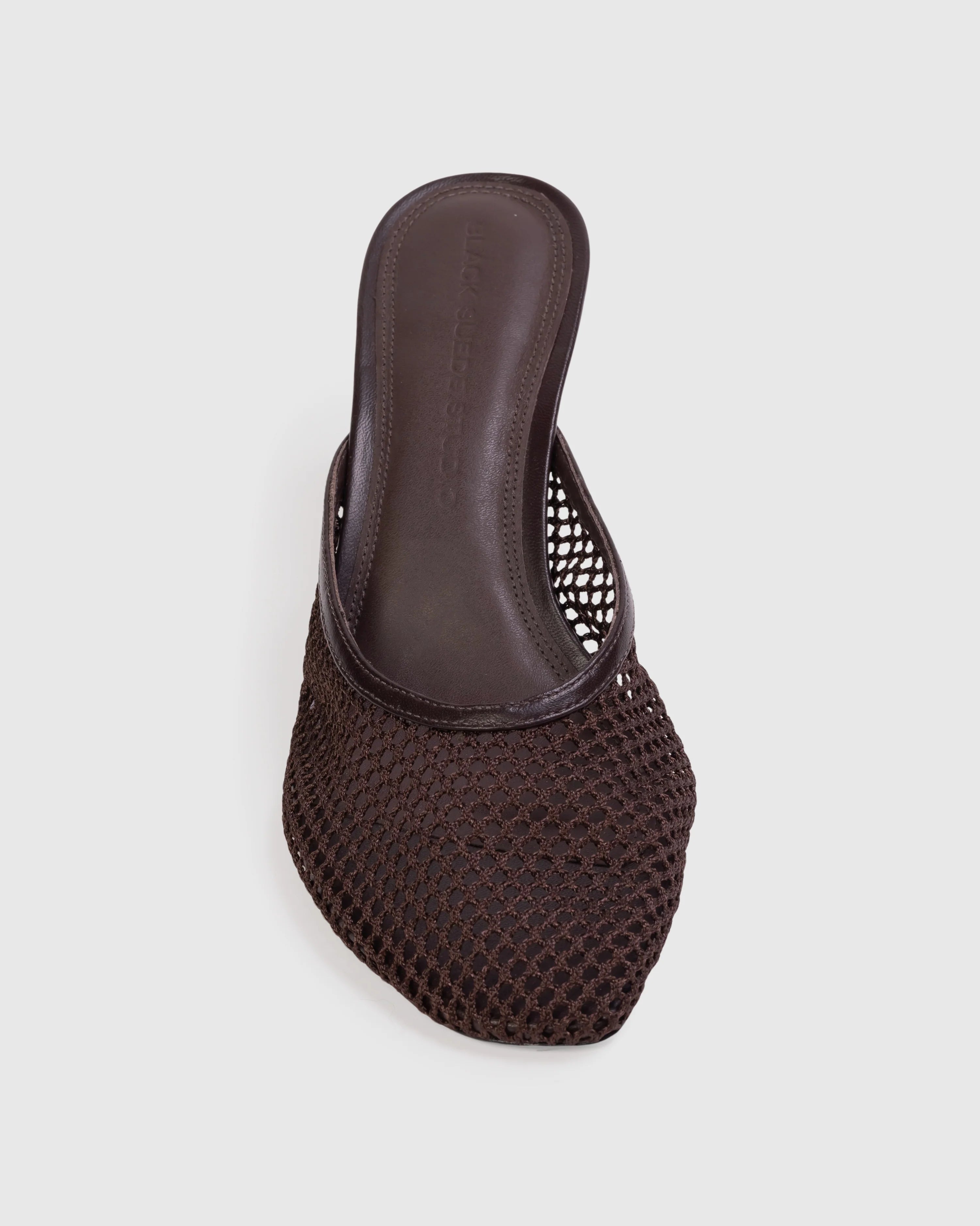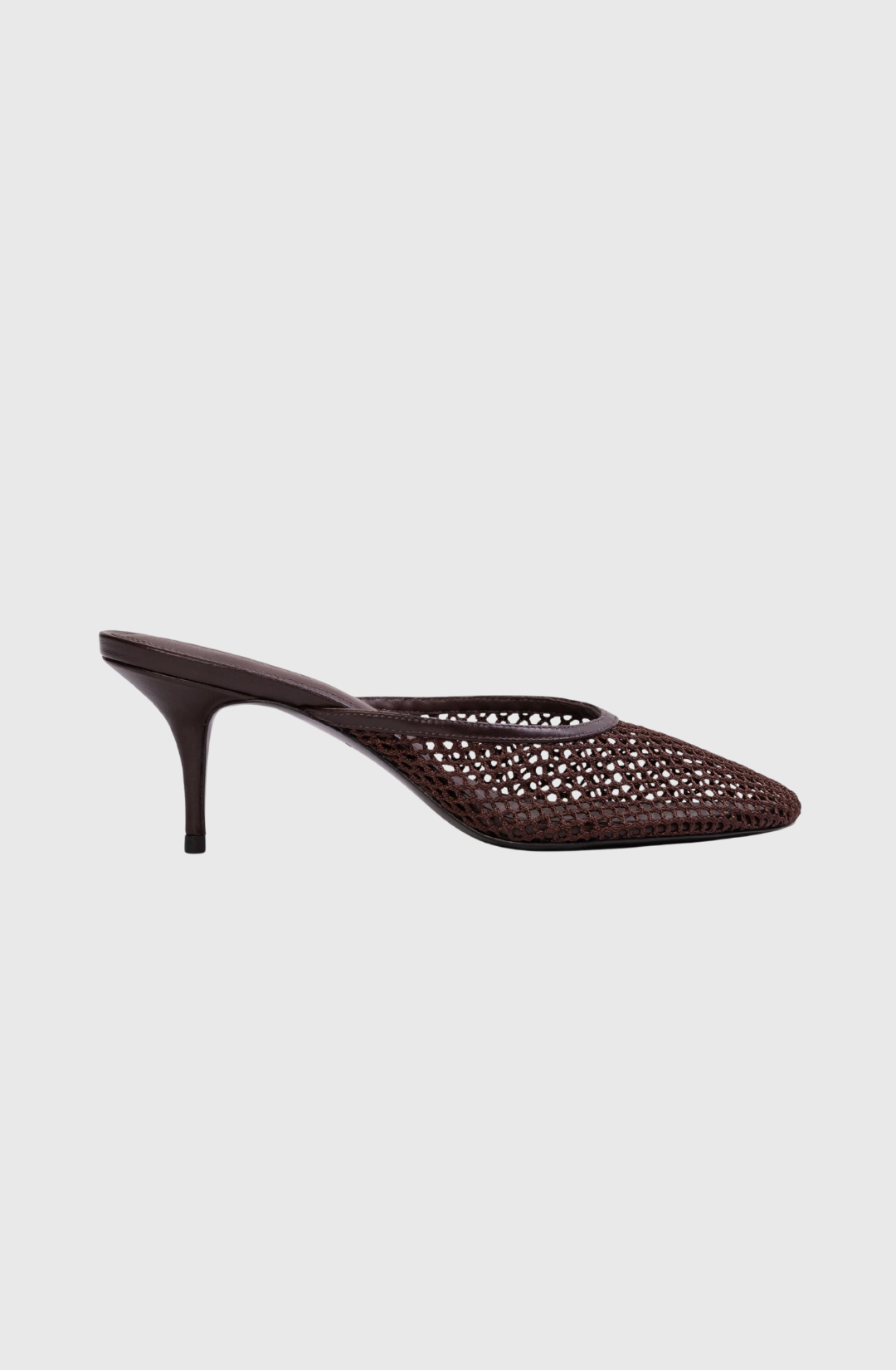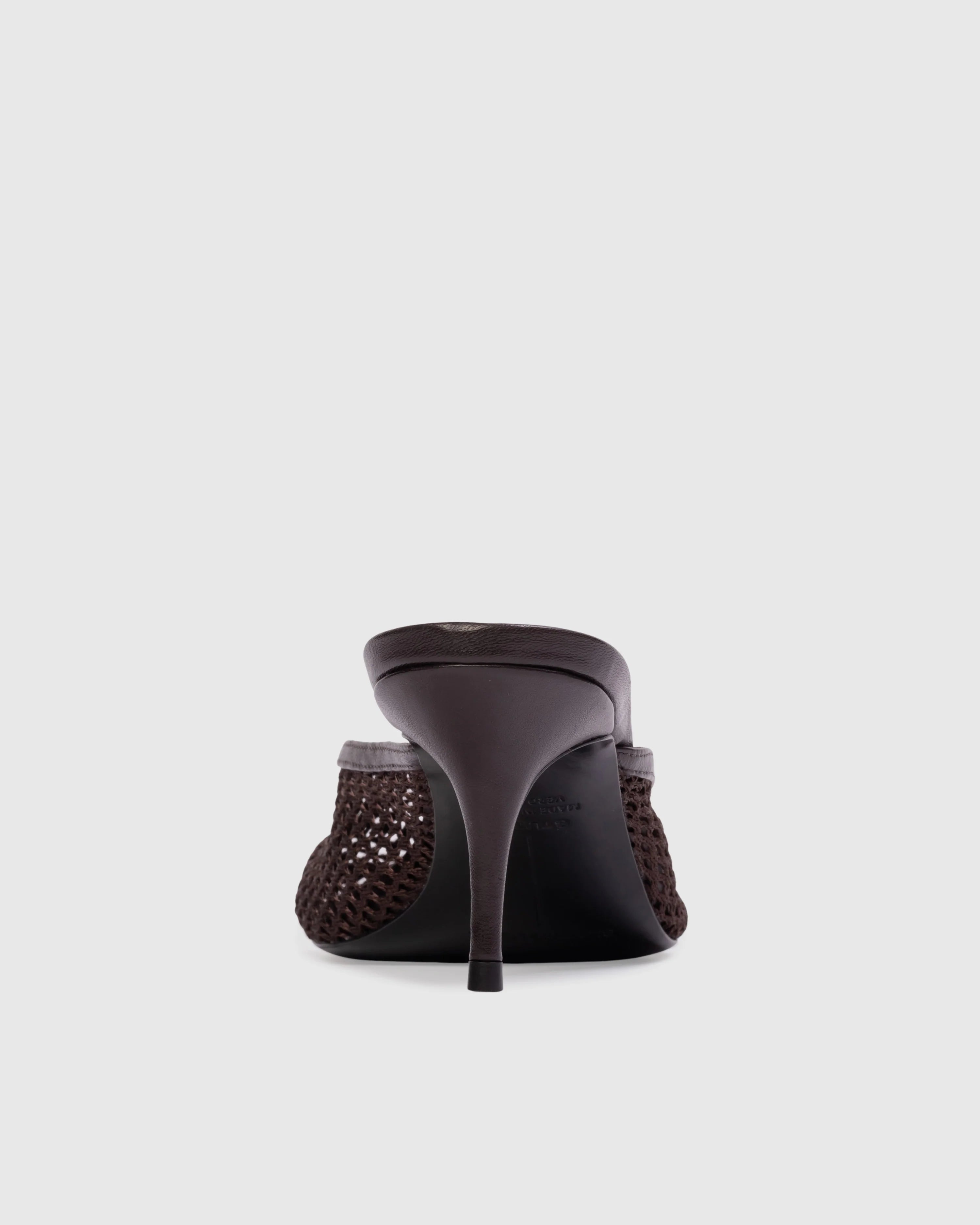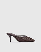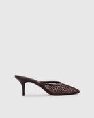 Effortless style meets comfort in this angled round toe mesh mule. Crafted from smooth buffed leather and breathable mesh, it features a curved mid heel that provides gentle arch support without sacrificing sophistication. Perfect for transitioning from day to evening, this versatile mule pairs seamlessly with dresses, trousers, or casual wear.