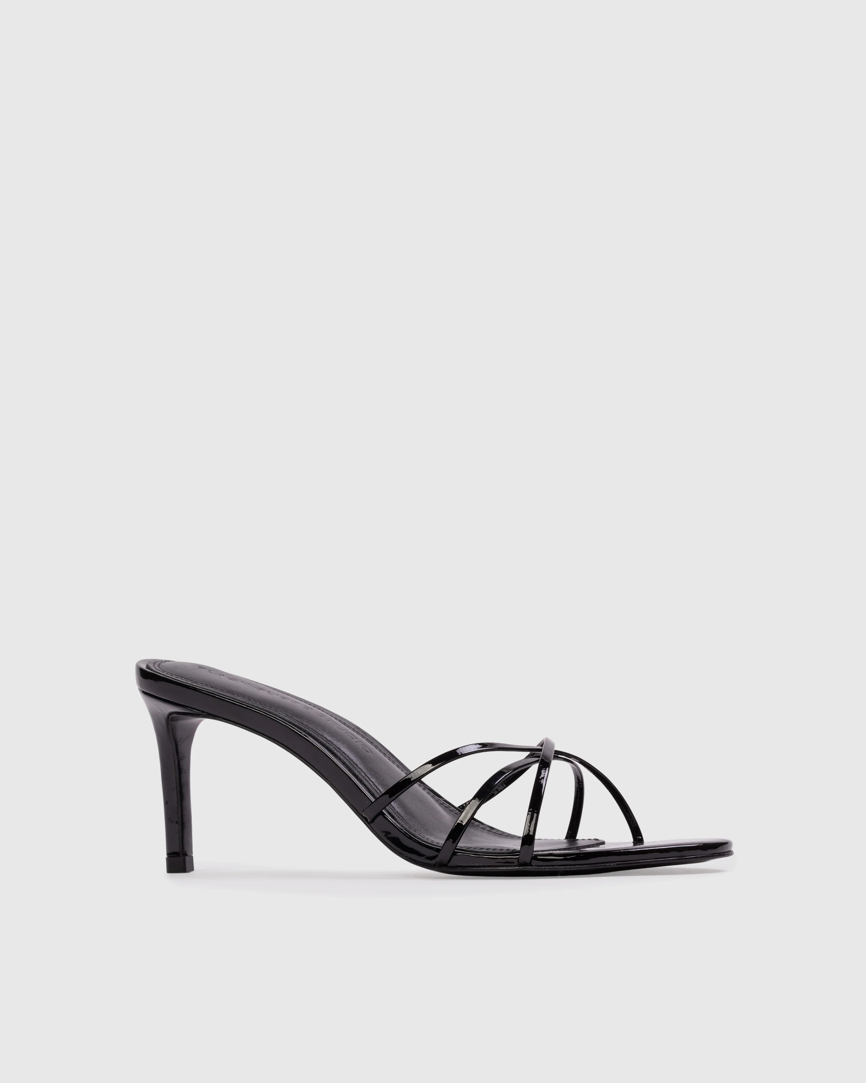 Effortless elegance meets everyday comfort with this slip-on mule. Featuring a rounded toe and striking multi-strap detail across the vamp, it delivers both style and visual interest. The smooth patent leather upper gleams with a polished finish, while the straight mid heel provides a flattering lift without sacrificing wearability. Perfect for transitioning from office to evening, this versatile mule pairs seamlessly with dresses, trousers, or casual wear.