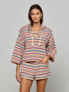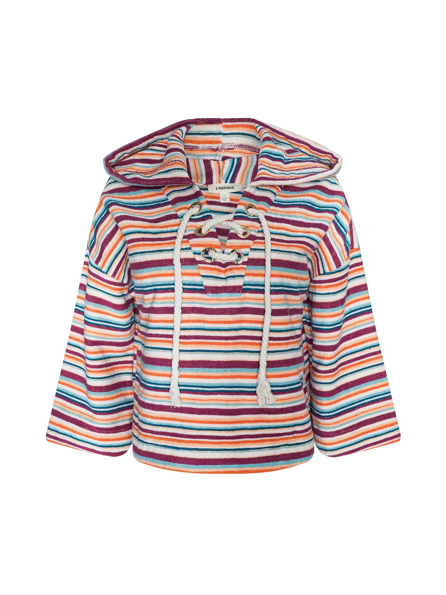 The Lee poncho redefines après-swim chic with a striped terrycloth fabrication and easy silhouette. Featuring a roomy hood, wide sleeves, and a relaxed cut, it’s equal parts cozy and elevated. Throw it over your swimsuit for poolside lounging, or pair with shorts and slides for the boardwalk and beyond.