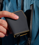 Its slim profile allows the Slimwallet to fit perfectly into any pocket. The open exterior is designed extra wide to accommodate cards, banknotes and receipts. The Cardprotector mechanism enables you to slide out cards with a simple motion, while the aluminium construction protects your cards from bending, breaking and unwanted wireless communication.