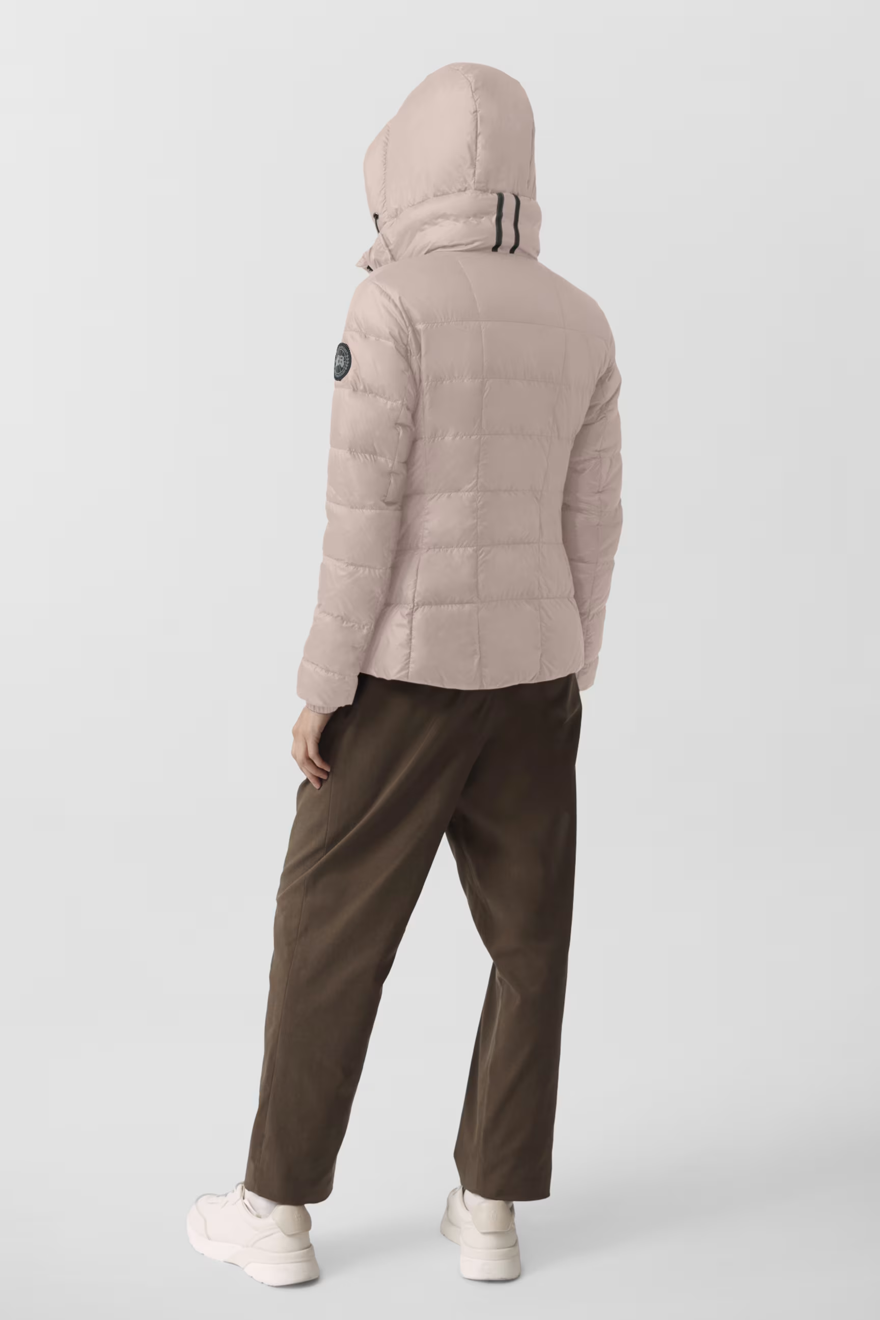 - Adjustable down-filled hood adds warmth and element protection. Signature double-stripe reflective details at back of hood for added visibility in low light