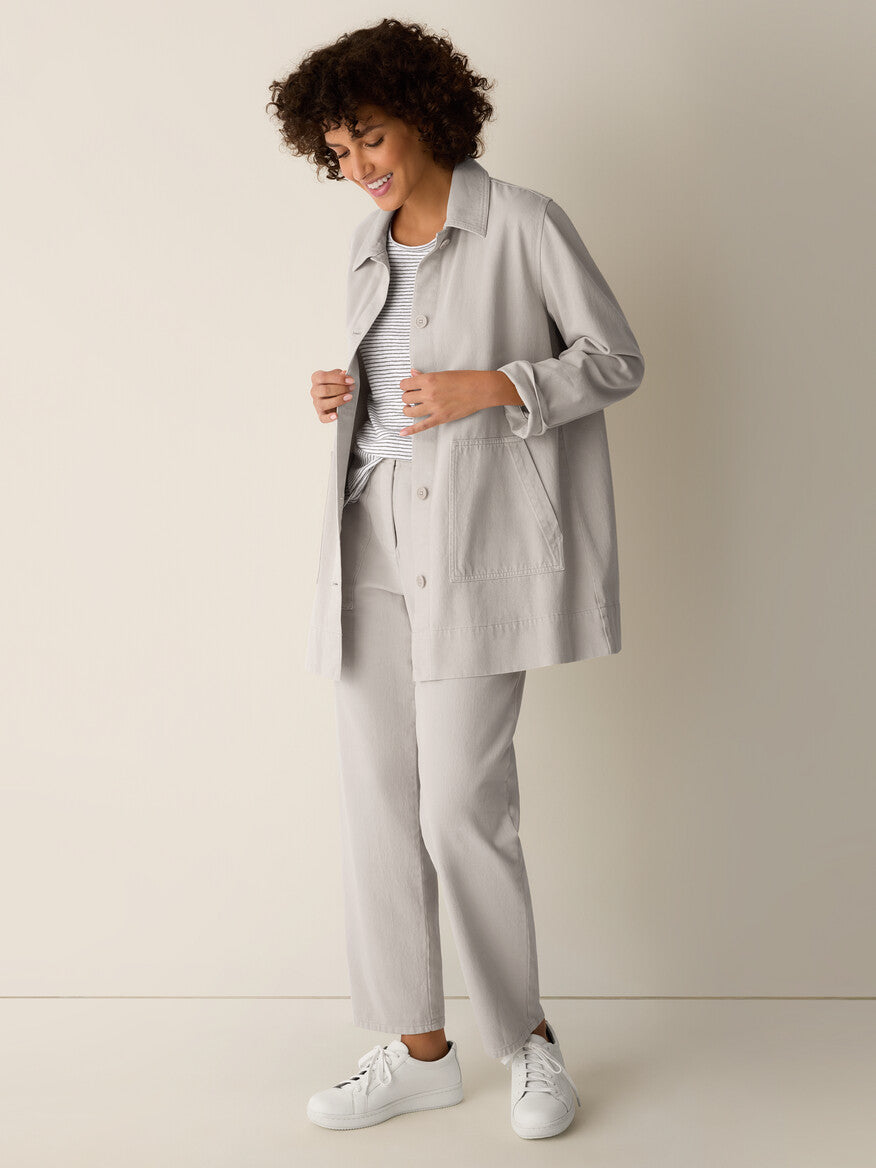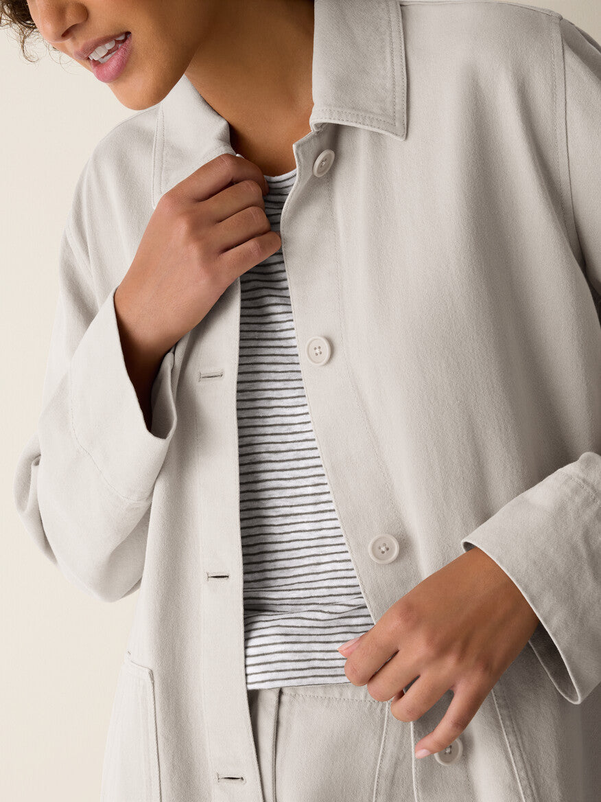 Eileen Fisher Women's Garment-Dyed Utility Cotton Classic Collar Long Jacket