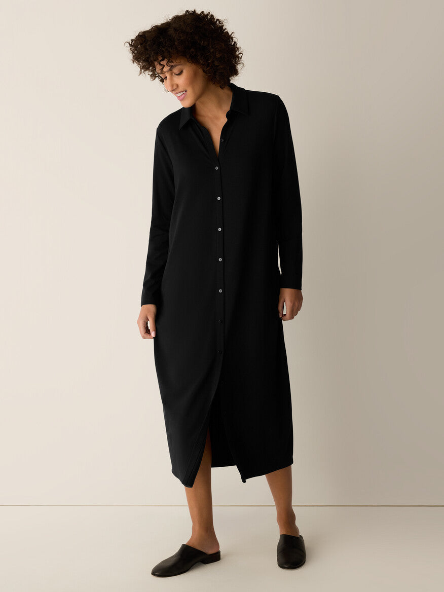 Eileen Fisher Women's Stretch Jersey Knit Classic Collar Oval Dress