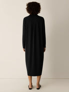 A timeless dress that effortlessly transitions from day to evening. Crafted in a luxuriously soft jersey knit, this piece features a refined classic collar and button-front closure that frame the neckline beautifully. The subtle oval silhouette skims the body with understated elegance, creating a flattering silhouette that moves with you. Perfect for those who appreciate quality basics with quiet sophistication.