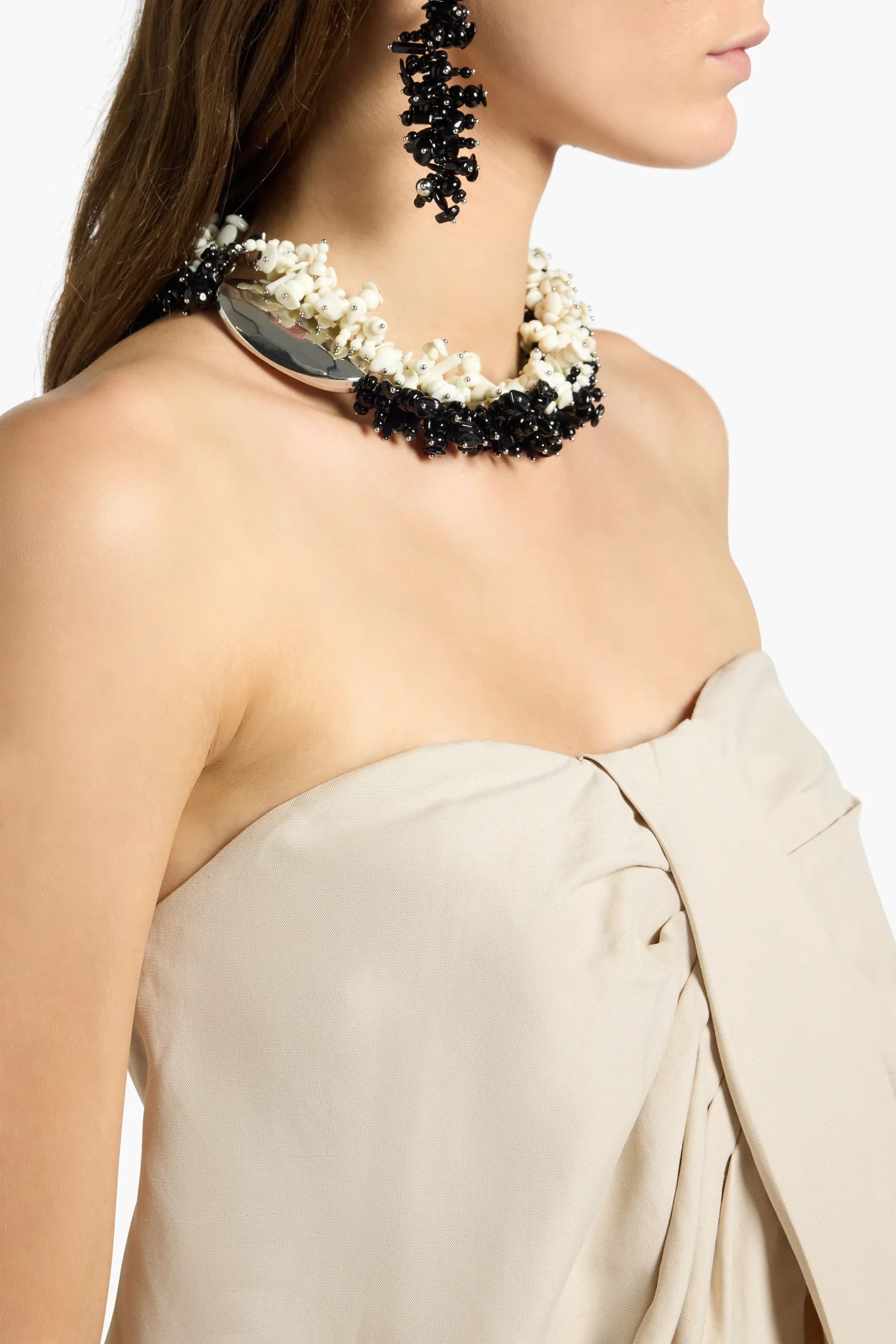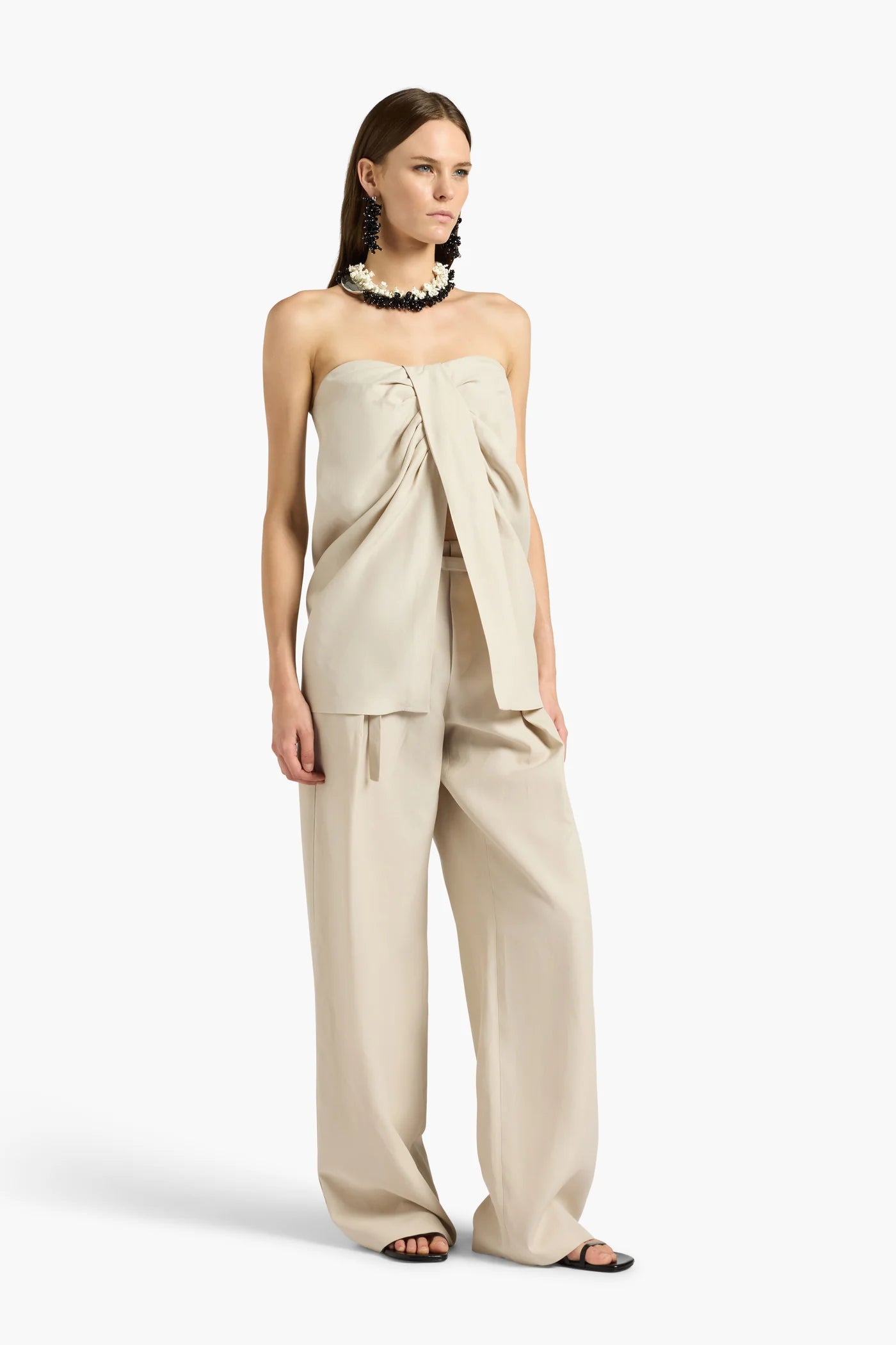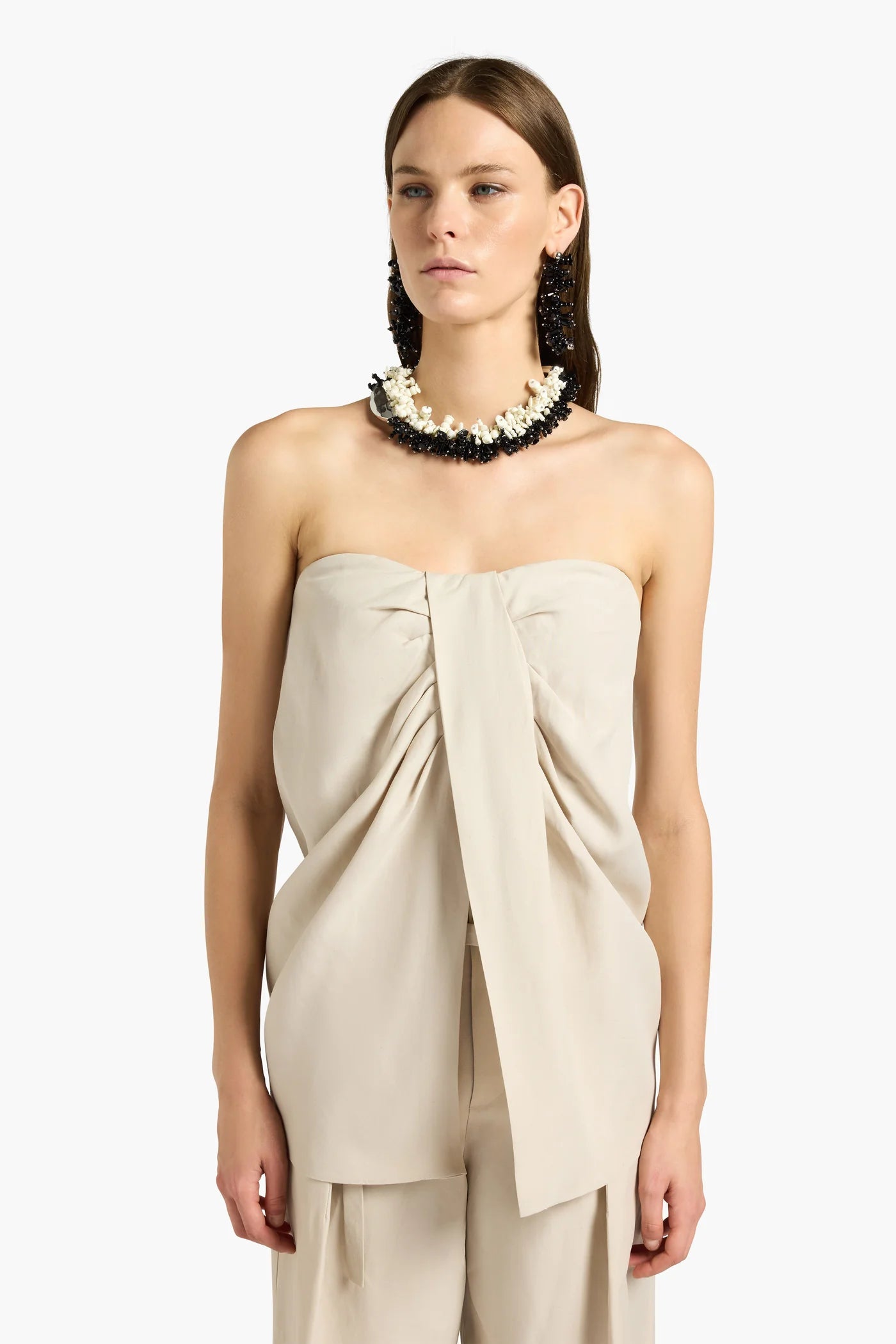 Elevate your wardrobe with this sophisticated viscose-linen bustier top from Liviana Conti. Featuring an eye-catching front motif with delicate ruffles and a flattering central opening, this piece combines elegance with modern design. The hidden back zipper ensures a seamless silhouette, while the hip-length cut offers versatile styling for both casual and dressed-up occasions. Perfect for layering or wearing as a statement piece.