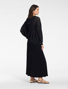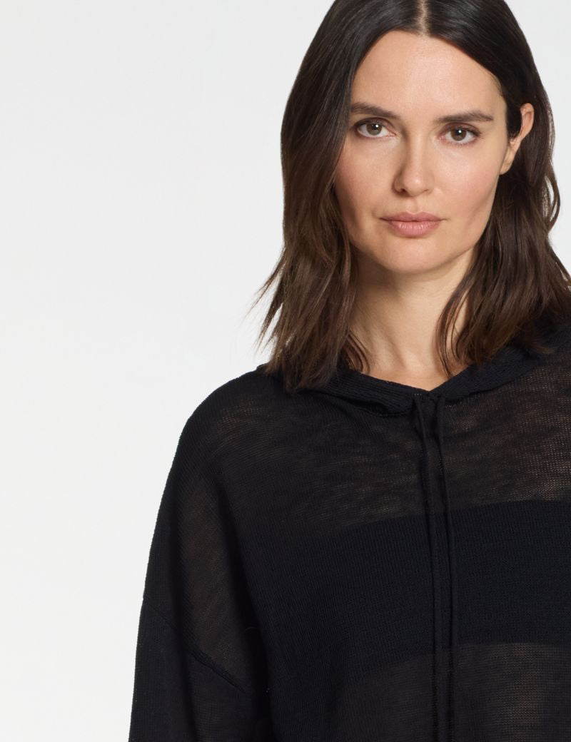 Borrowed from the sportswear wardrobe, this refined hoodie stands out for its practical volume and urban appeal. The hood and adjustable drawstring neckline deliver comfort and freedom of movement, while linen and nylon add modern fluidity. Perfect for layering or wearing solo, it transitions effortlessly from casual weekends to relaxed workdays.