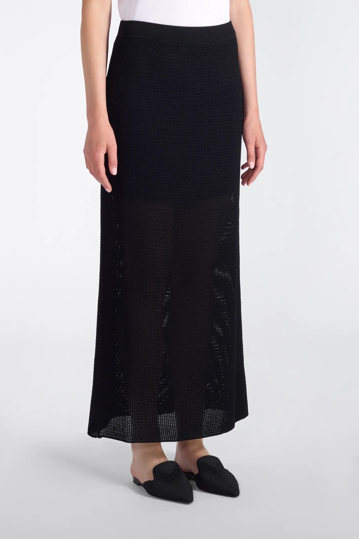 Elevate your wardrobe with this refined Italian-crafted skirt from Liviana Conti. Featuring a sleek micro mesh design in luxurious stretch viscose, this piece offers a gracefully close-fitting silhouette that flatters the form. The elasticated waistband ensures comfort throughout the day, while the premium blend of viscose and polyamide delivers both breathability and durability. A versatile essential that transitions seamlessly from office to evening occasions.