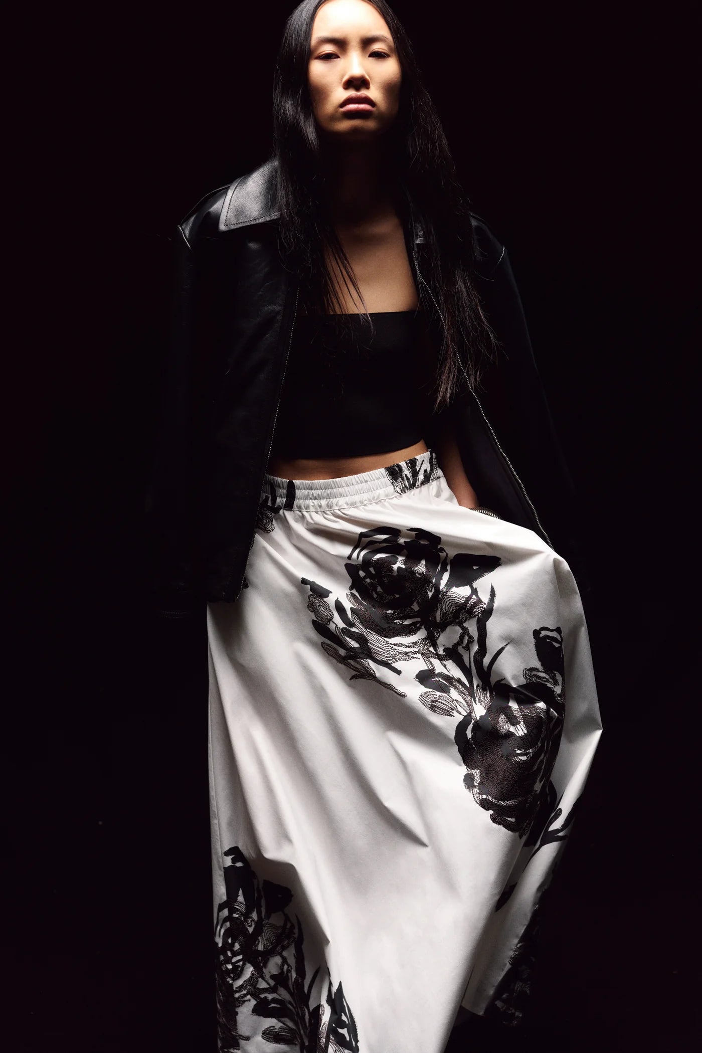 Elevate your wardrobe with the Liviana Conti Indira Skirt, a refined piece that seamlessly blends comfort with elegance. Crafted from stretch cotton poplin, this long skirt features a graceful A-line silhouette that flatters every figure. The delicate flower print and intricate embroidery details add a touch of botanical sophistication, while the elastic waistband ensures all-day comfort. Practical hidden side pockets provide convenient storage without compromising the skirt's polished aesthetic. Perfect for both professional settings and special occasions.