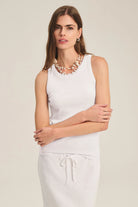 Elevate your essentials with this refined tank, expertly constructed from a luxurious cotton-modal blend with a subtle ribbed texture. The carefully engineered stretch ensures a flattering, second-skin fit that moves with you effortlessly. Understated yet impeccably crafted, this versatile piece anchors any wardrobe—equally at home layered under blazers or worn solo for an effortlessly polished look.