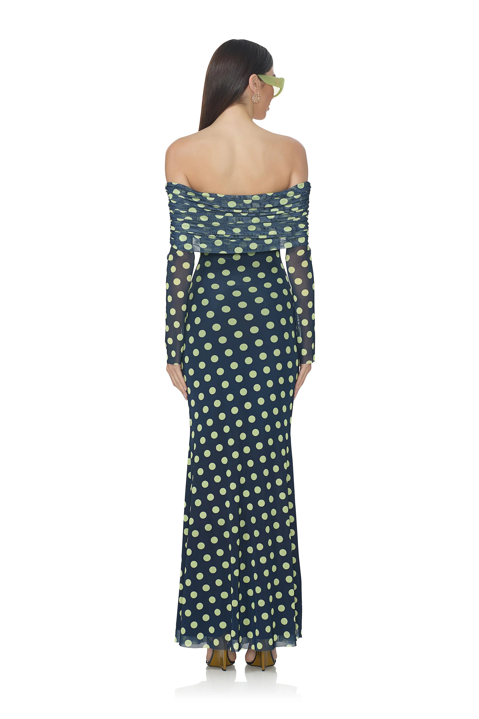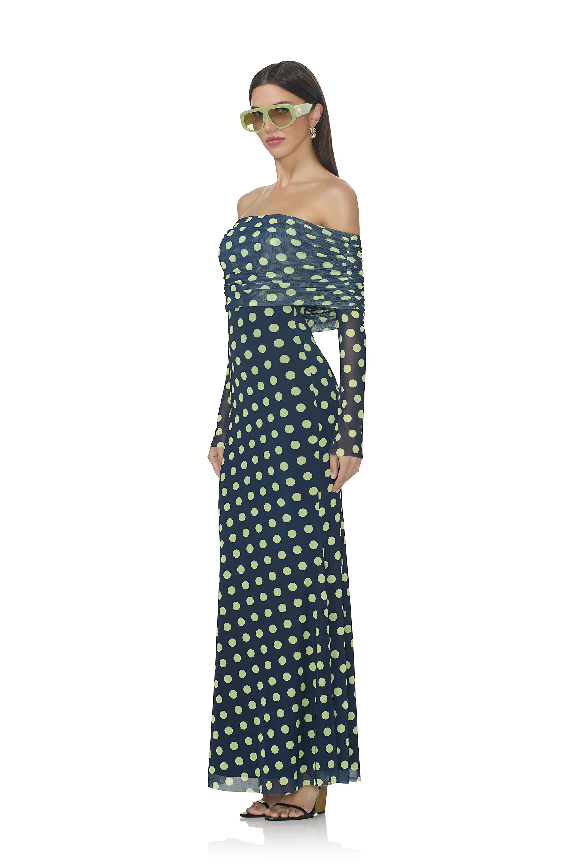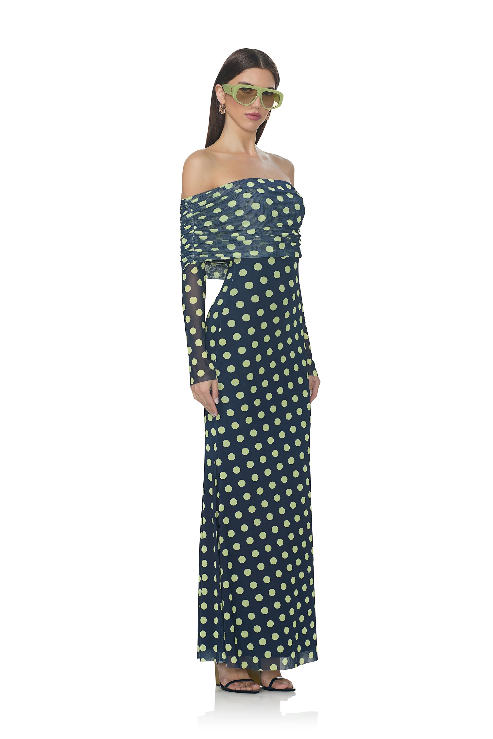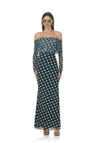 The Thelma dress is a statement piece designed for the modern woman who appreciates refined style. Its elegant off-shoulder neckline and graceful long sleeves frame the silhouette beautifully, while strategic gathered detailing adds texture and visual interest. Rendered in a luxurious power mesh print, this dress exudes confidence and poise, making it an ideal choice for upscale gatherings and special occasions where understated glamour speaks volumes.