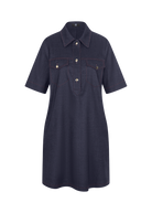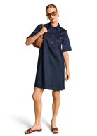 Paris - Milan - Berlin - New York: the trendy RIANI denim dress makes it possible! Chic polo style meets casual denim look in Delavè Linen Stretch. Thanks to the high-quality Delavé yarns, the fabric has a washed-out, denim character without rubbing off. The button placket, breast pockets and collar add a modern touch to the classic silhouette.